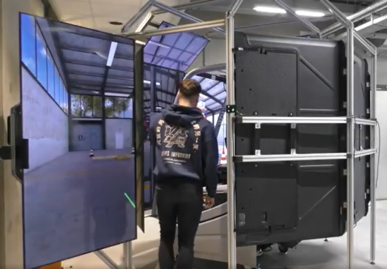 Wat deze simulator écht onderscheidt? Het indrukwekkende 360°-beeldscherm. Hierdoor kunnen leerlingen tijdens het achteruitrijden daadwerkelijk achteromkijken – iets wat in de meeste simulators niet mogelijk is. Dit zorgt voor een realistische en veilige leerervaring.